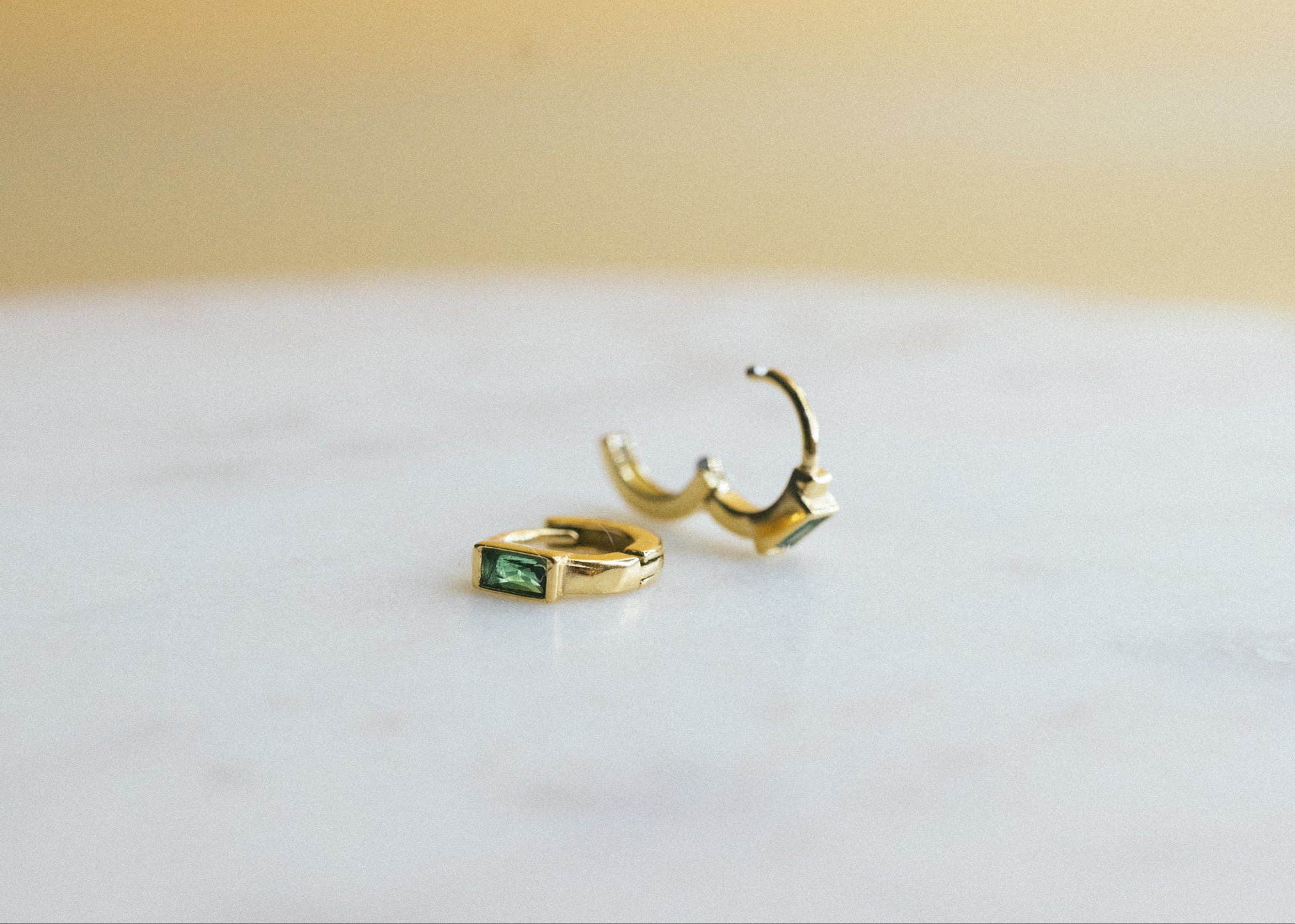 Green Glow Huggies — 18K Green Zircon Gold Huggies Earrings